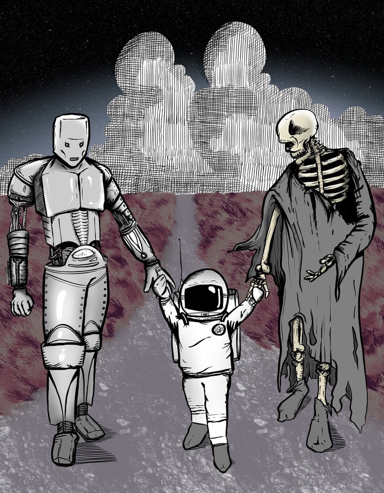 Prepare to be challenged, intrigued, and maybe even a little weirded out. We create funky, one-of-a-kind art inspired by everything and nothing, with a healthy dose of the unexpected. Here, beauty and grotesquerie rub shoulders, and literature meets pop culture in a wild, self-deprecating dance. Don't just hang it on the wall - let our art infuse your whole world! We offer a range of home products that showcase our designs, transforming everyday items into conversation starters. Dive in, explore, and don't be afraid to get a little messy.